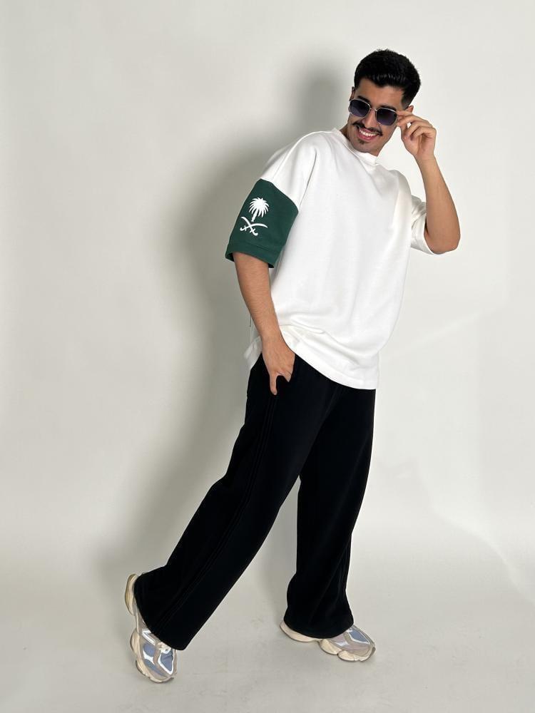 ارتدِ الفخر والانتماء مع تيشرت وطني سعودي بتصميم أنيق مستوحى من ألوان العلم وشعار المملكة. مصنوع من خامة قطنية عالية الجودة تمنحك راحة طوال اليوم، مع قصّة عصرية تناسب جميع الأذواق. مثالي للاحتفال باليوم الوطني السعودي أو أي مناسبة وطنية، ولإطلالة تميزك بين الجميع.