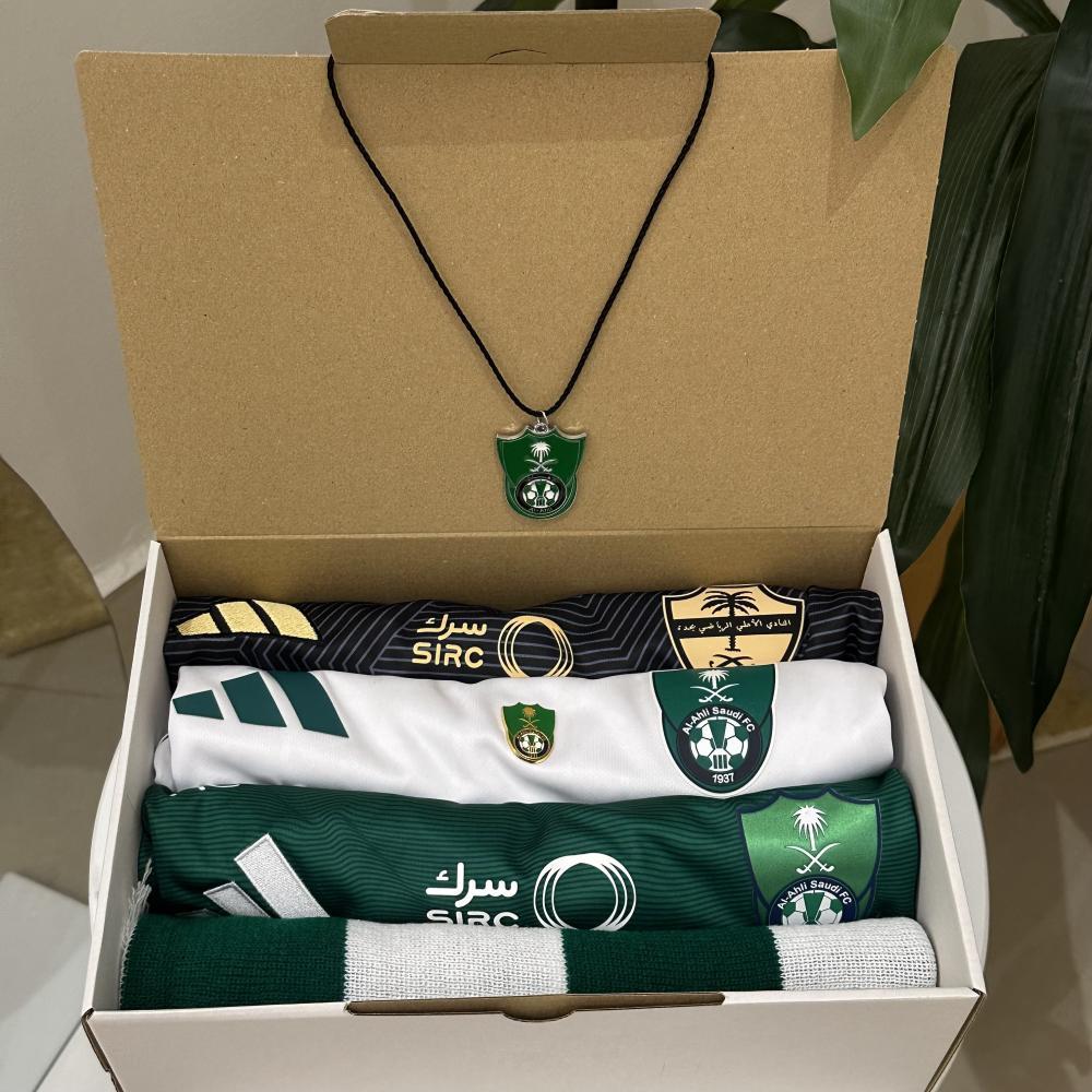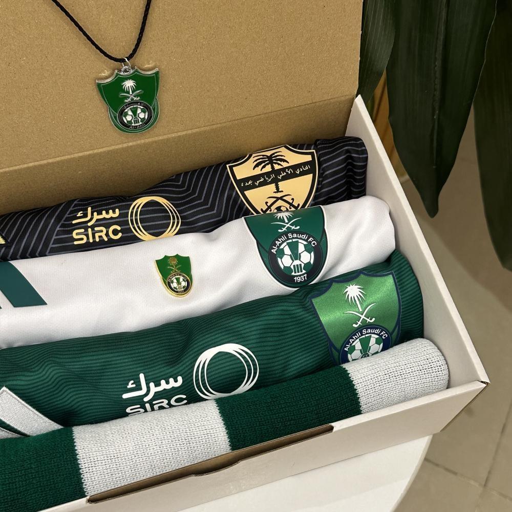 بكج الأهلي المميز لعشاق الراقي ⚽💚، يضم طقم النادي الرسمي مع إكسسوارات أنيقة وشال داعم بألوان الأخضر والأبيض ليمنحك تجربة مشجّع متكاملة. مثالي للهدايا أو للاستخدام الشخصي في المباريات والفعاليات الرياضية.