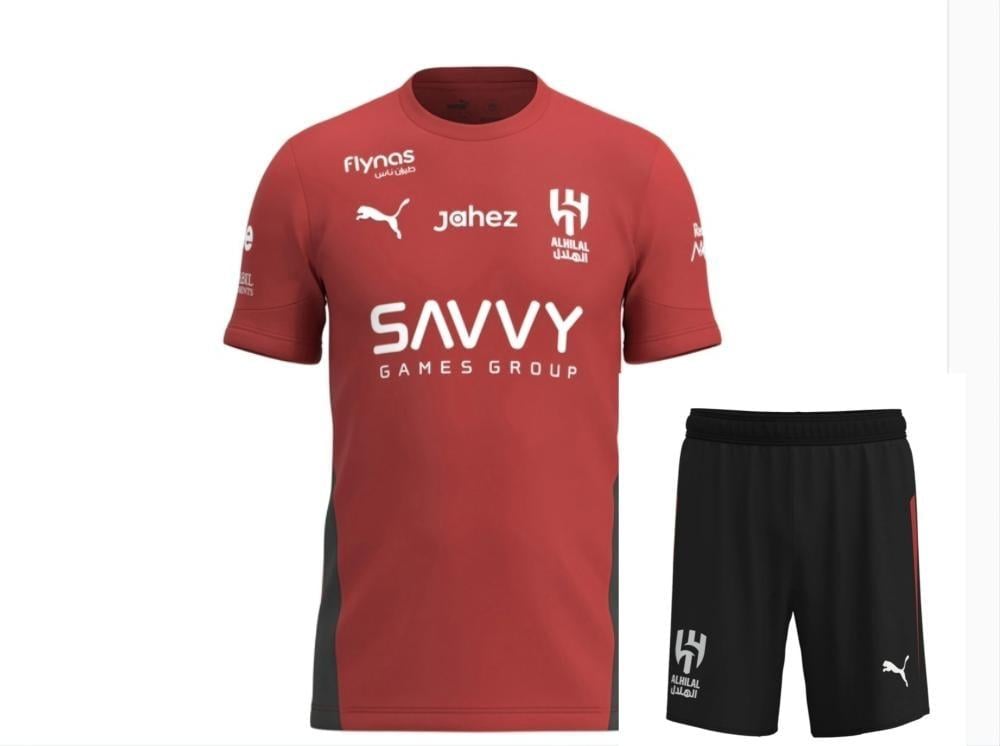 الطقم مكوّن من تيشرت و شورت رياضي بشعار الهلال وألوانه الرسمية.