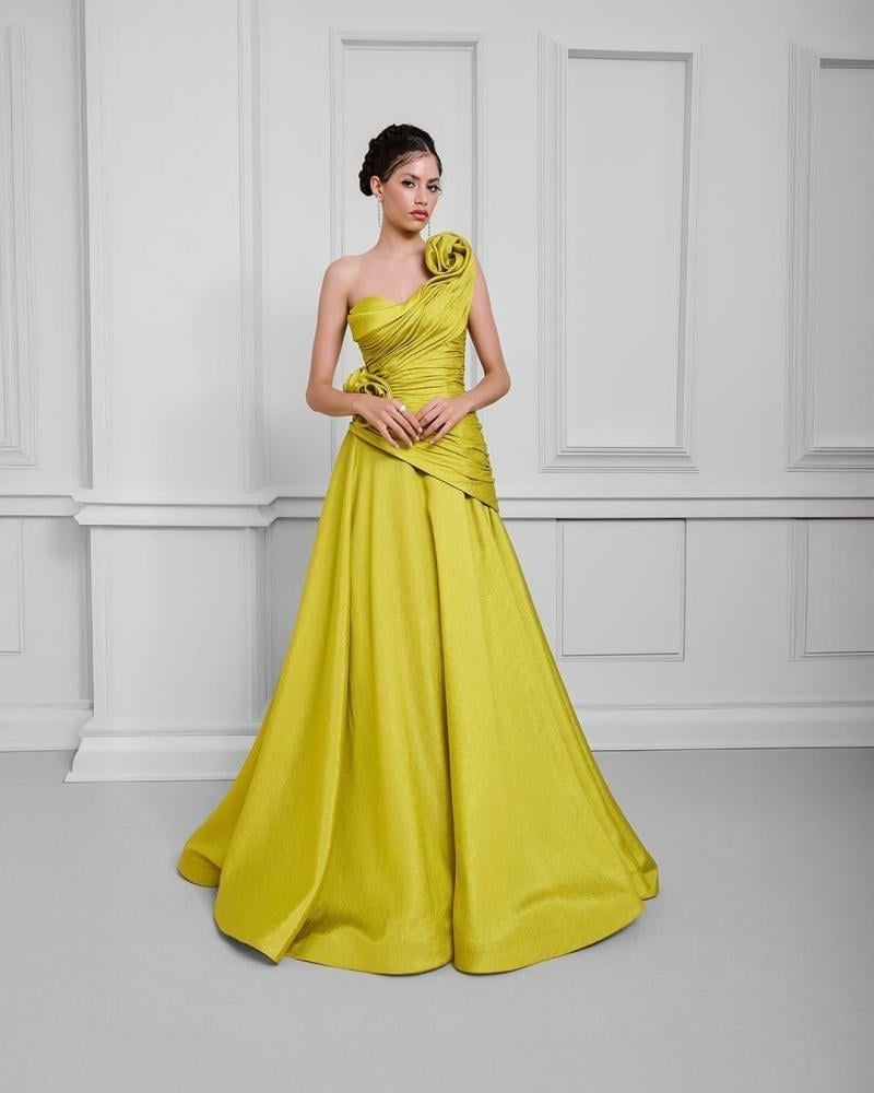 ارتقي بإطلالتك في المناسبات الخاصة مع هذا الفستان أوف شولدر ، المصمم بقصة كورسيه تبرز جمال القوام، التصميم الواسع من الأسفل يمنحك حركة ملوكية ساحرة.
