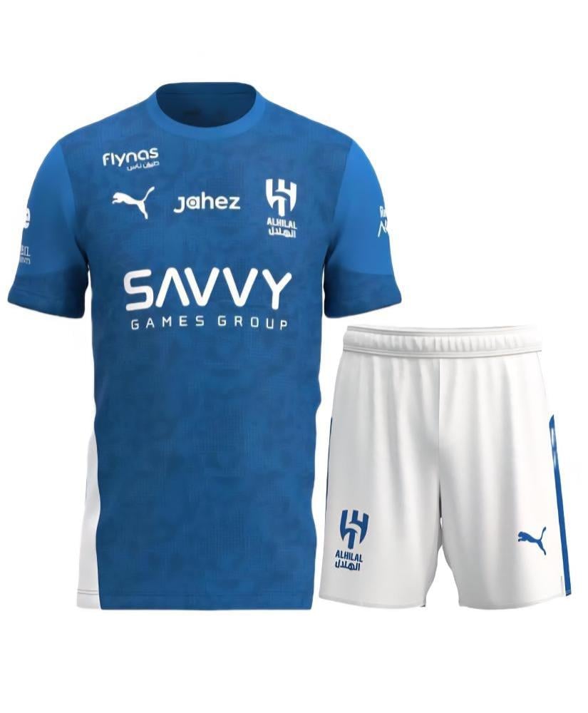 الطقم مكوّن من تيشرت و شورت رياضي بشعار الهلال وألوانه الرسمية.