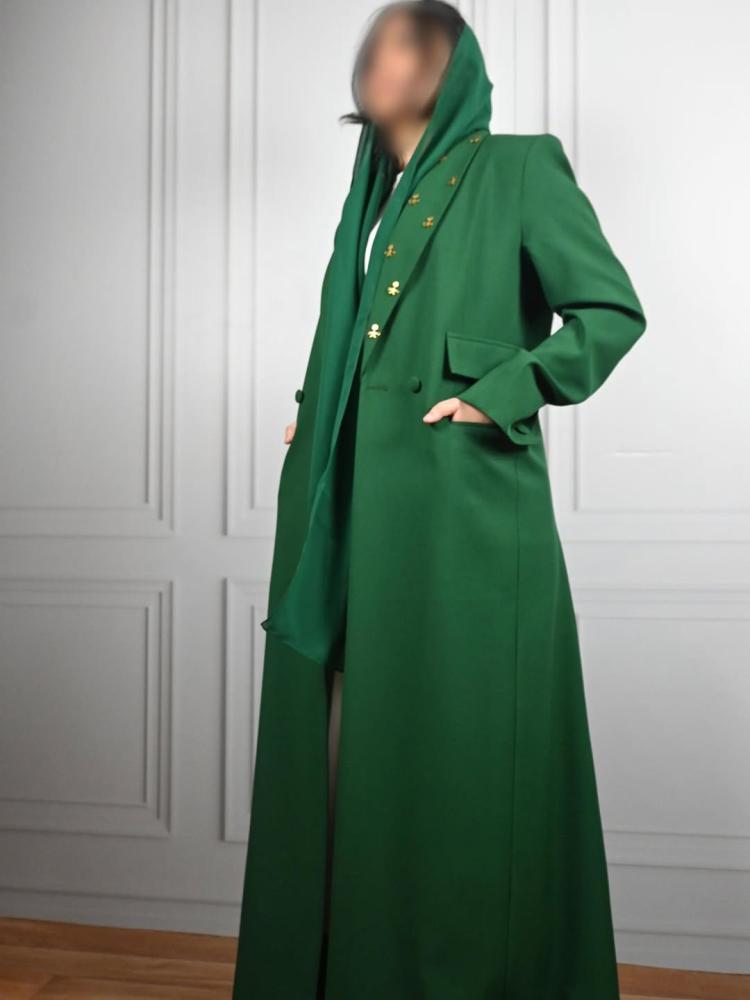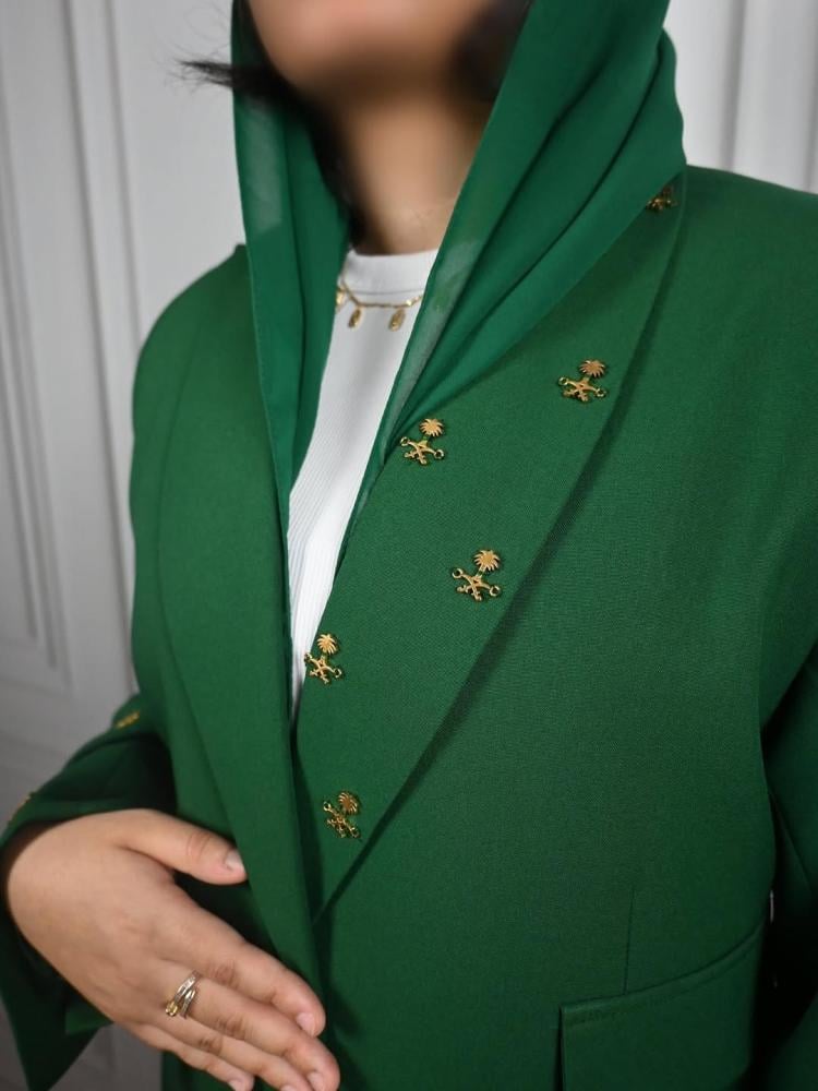 عباية اليوم الوطني باللون الأخضر الملكي، تصميم أنيق يجمع بين الأصالة والحداثة ليمنحك إطلالة مميزة تعبّر عن فخر وانتماء للوطن. مصنوعة من خامة فاخرة بجودة عالية مع تطريزات ناعمة تضيف لمسة من الفخامة، لتكون خيارك المثالي للاحتفال باليوم الوطني والمناسبات الخاصة.